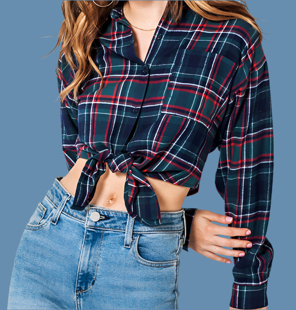Tied Flannel Plaid Shirt